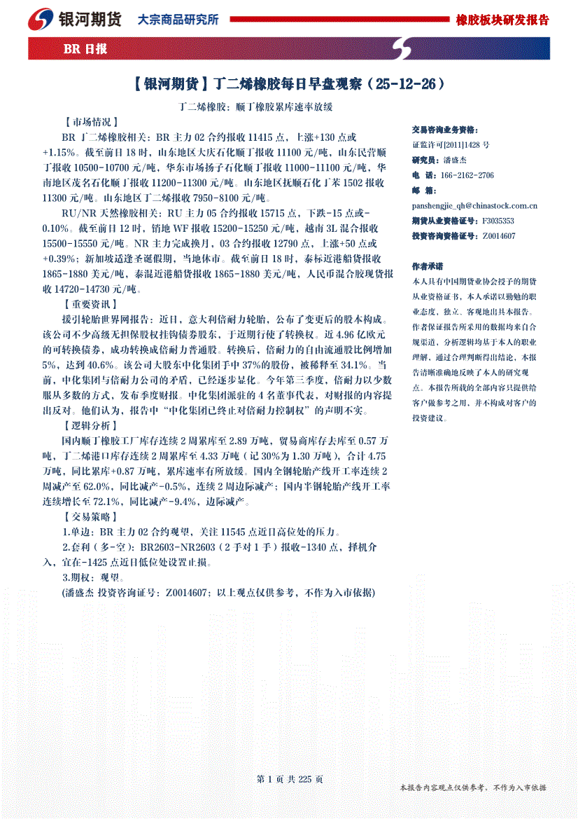 银河期货-丁二烯橡胶每日早盘观察-251226