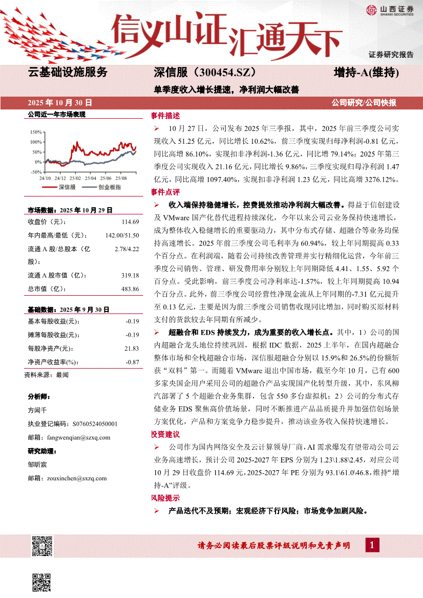 深信服:山西证券-深信服-300454-单季度收入增长提速,净利润大幅改善-251030