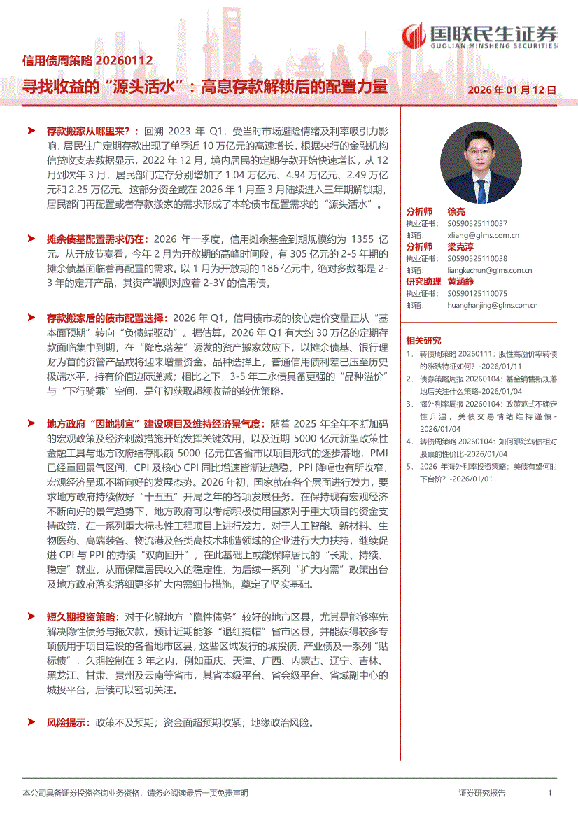 国联民生证券-信用债周策略:寻找收益的“源头活水”,高息存款解锁后的配置力量-260112