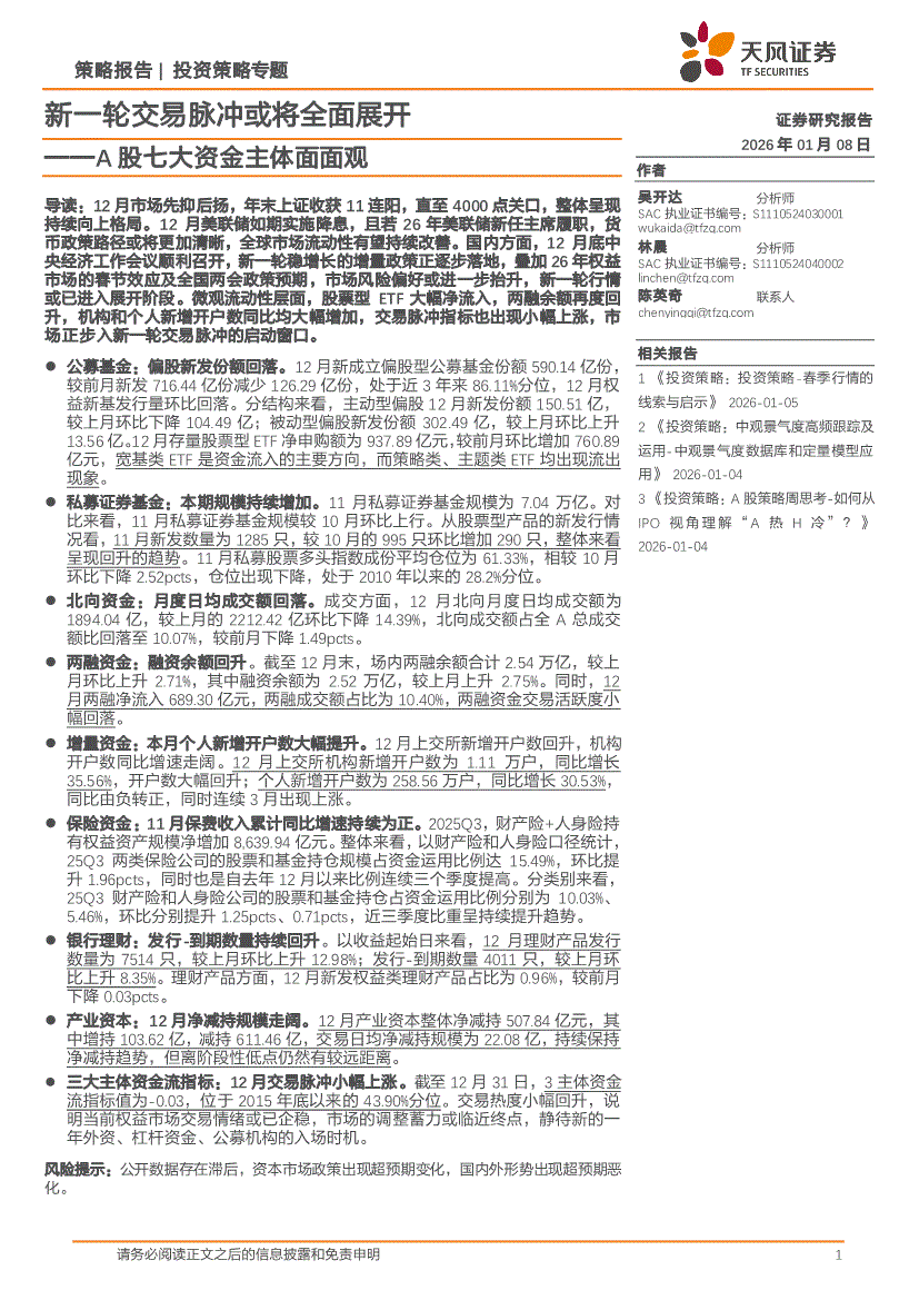 天风证券-A股七大资金主体面面观:新一轮交易脉冲或将全面展开-260108