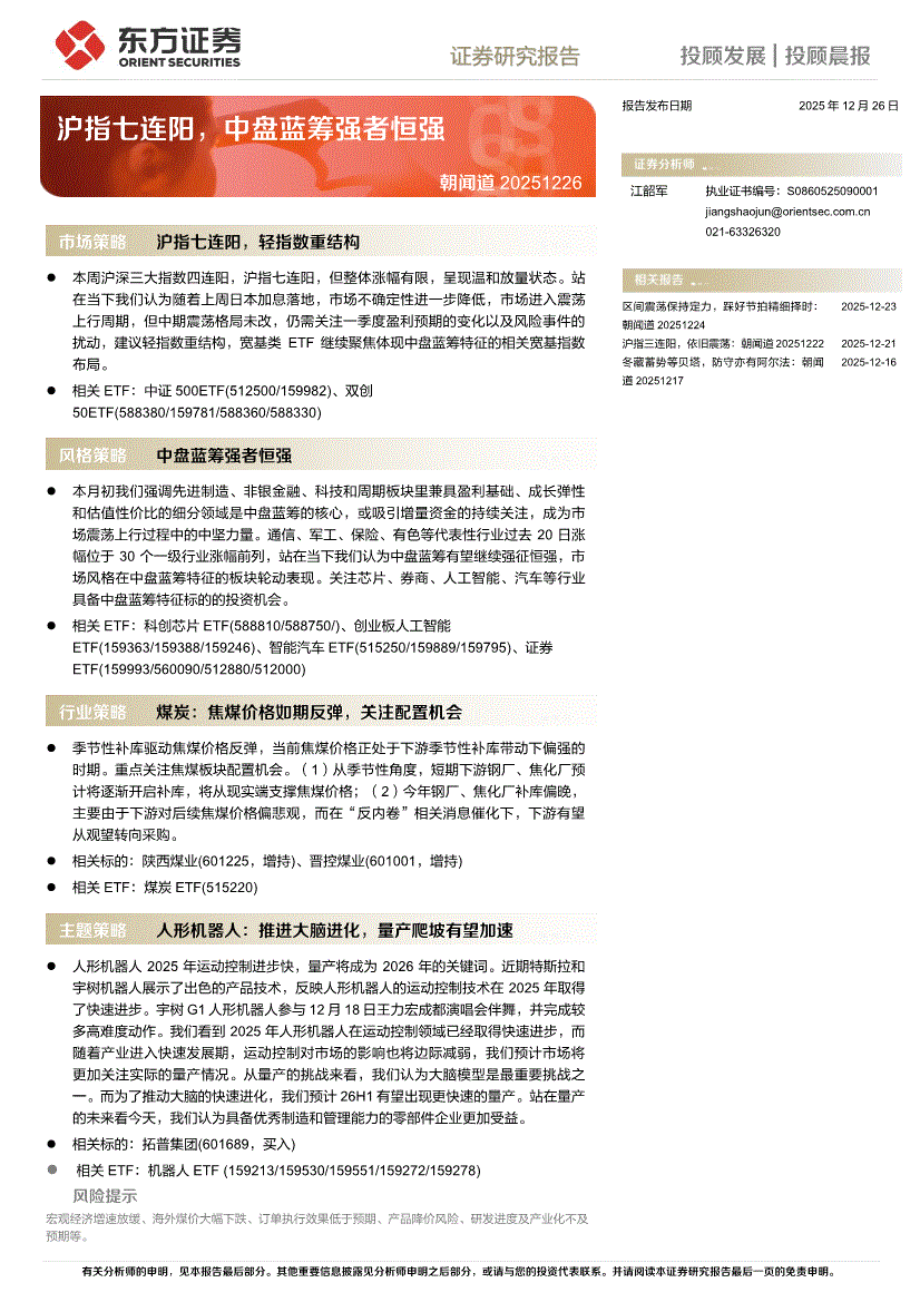 东方证券-朝闻道:沪指七连阳,中盘蓝筹强者恒强-251226