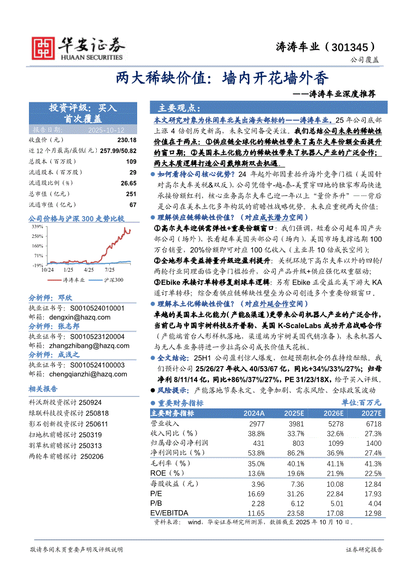 涛涛车业:华安证券-涛涛车业-301345-深度推荐:两大稀缺价值,墙内开花墙外香-251012