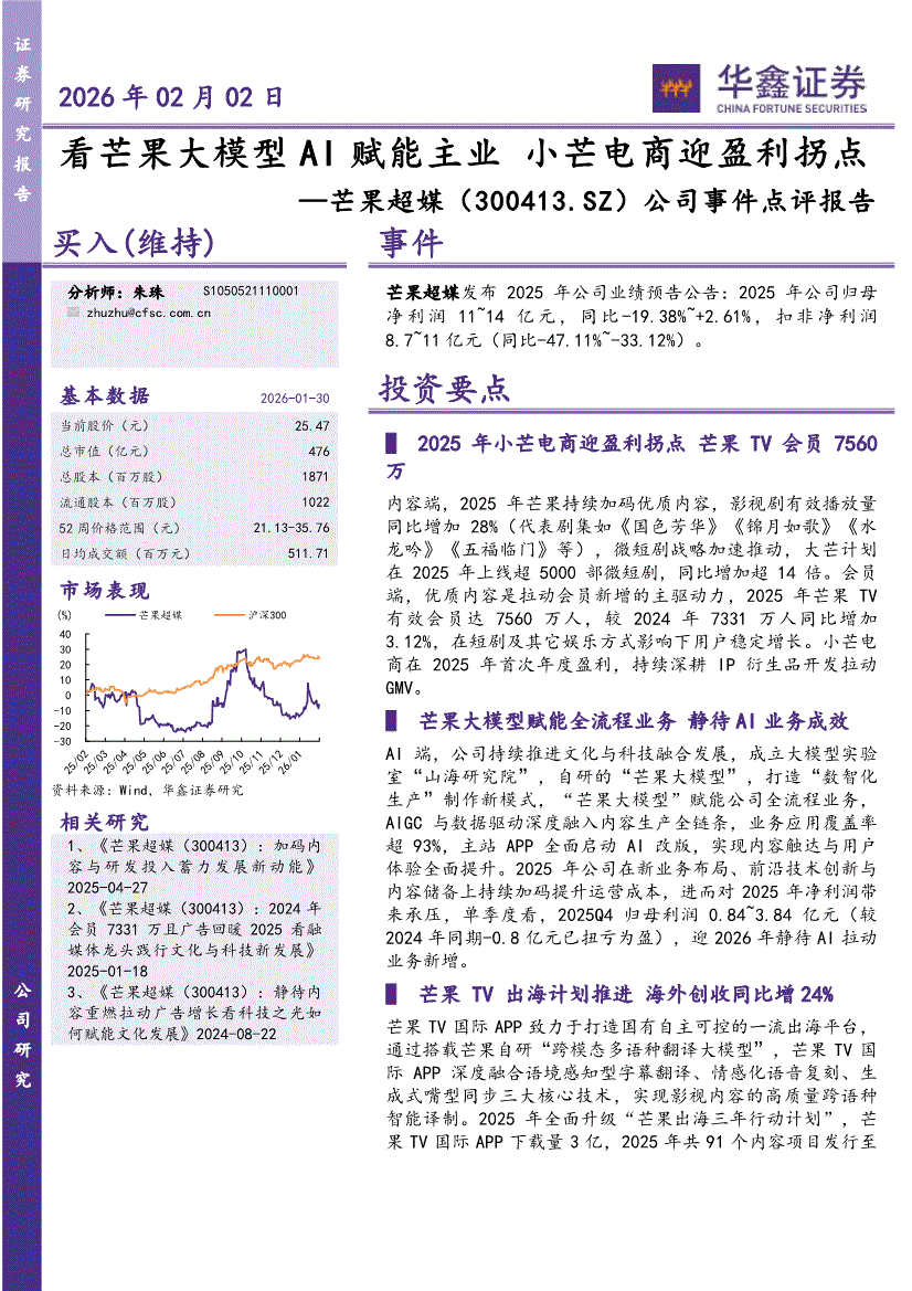 华鑫证券-芒果超媒-300413-公司事件点评报告:看芒果大模型AI赋能主业,小芒电商迎盈利拐点-260202