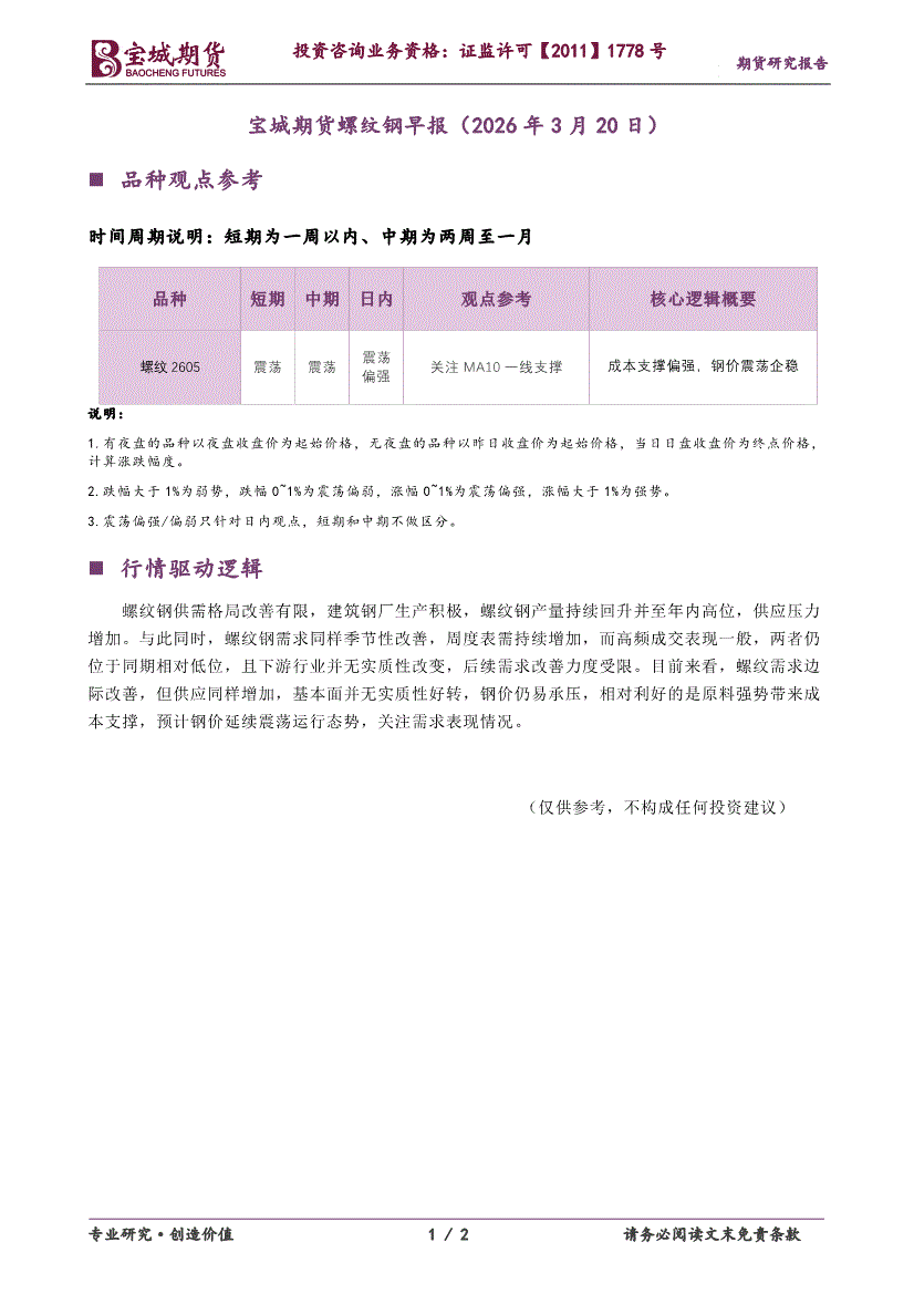 宝城期货-螺纹钢早报-260320