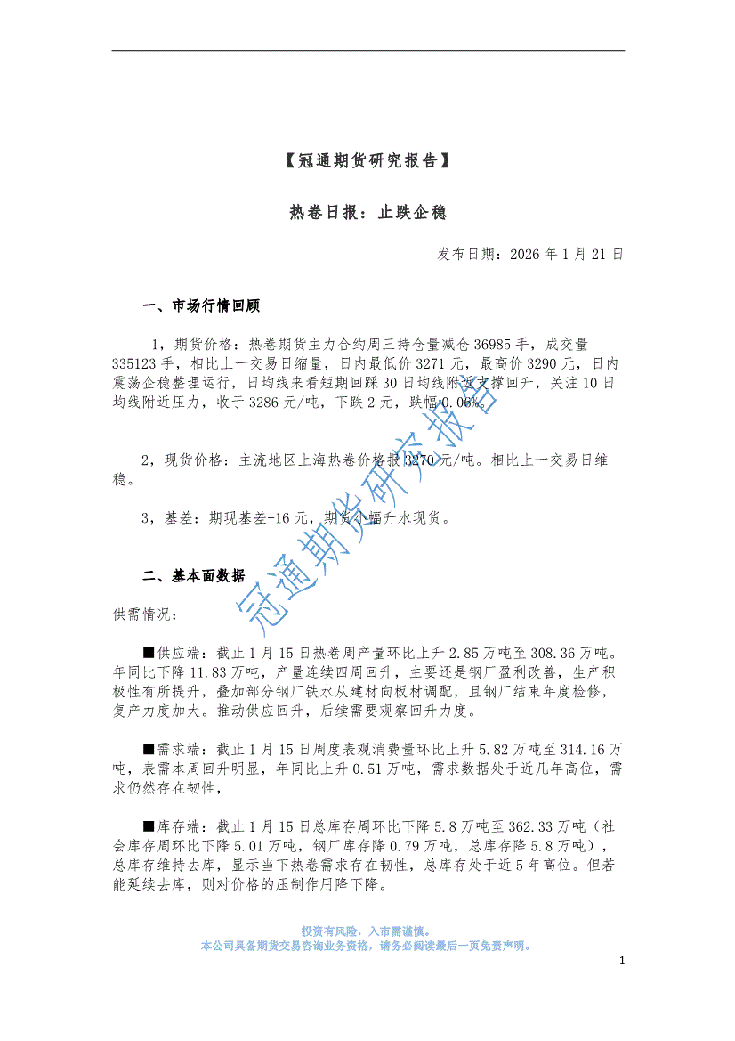 冠通期货-热卷日报:止跌企稳-260121