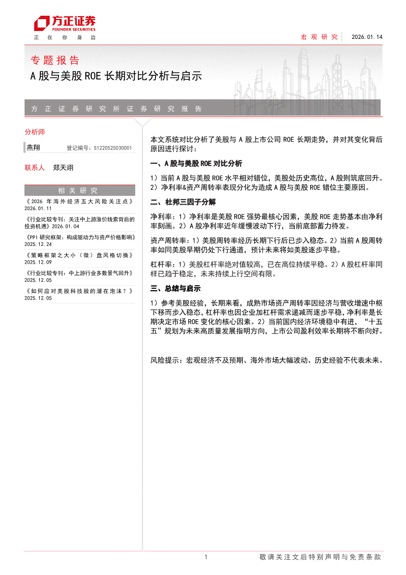 方正证券-专题报告:A股与美股ROE长期对比分析与启示-260114