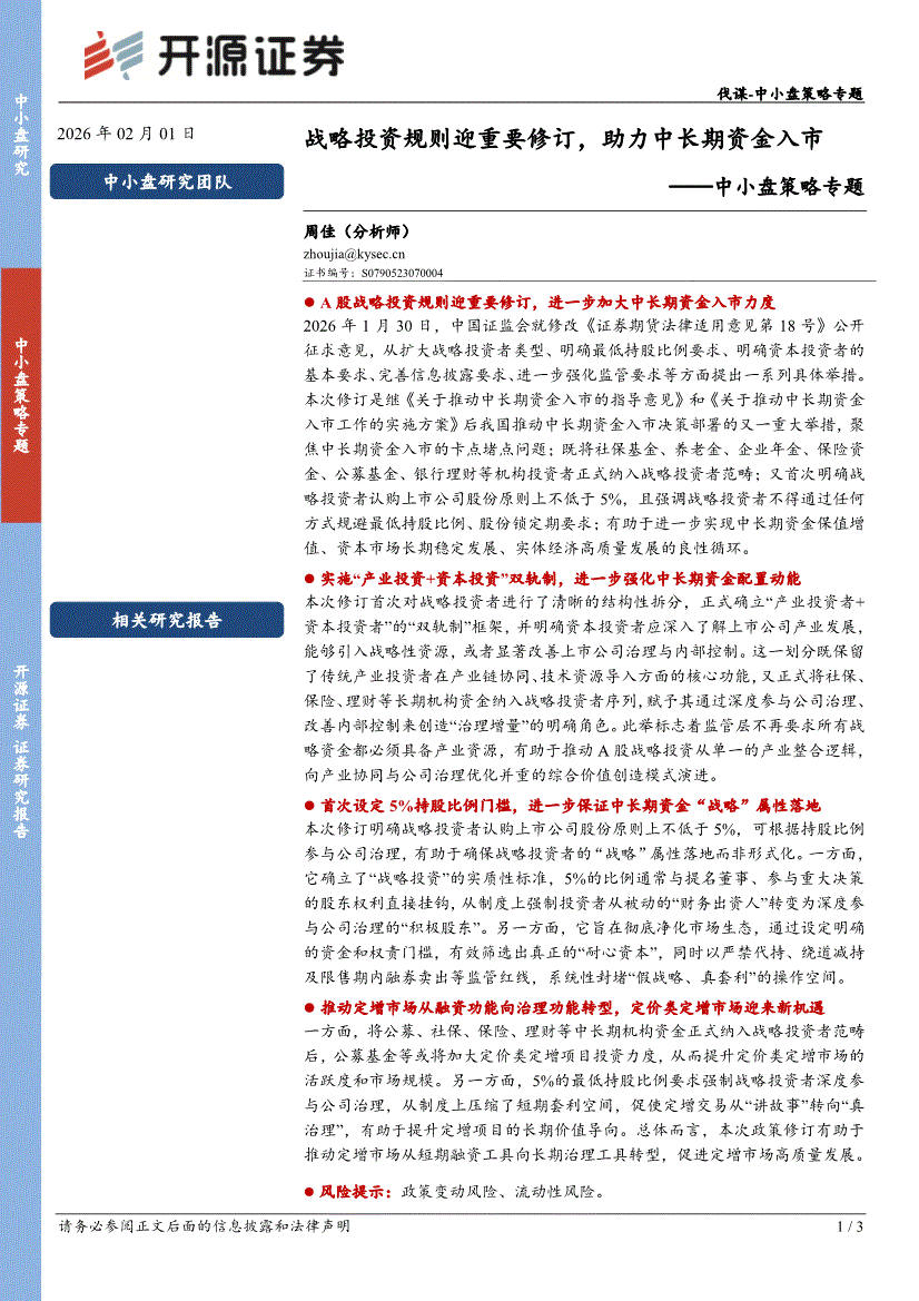 开源证券-中小盘策略专题:战略投资规则迎重要修订,助力中长期资金入市-260201