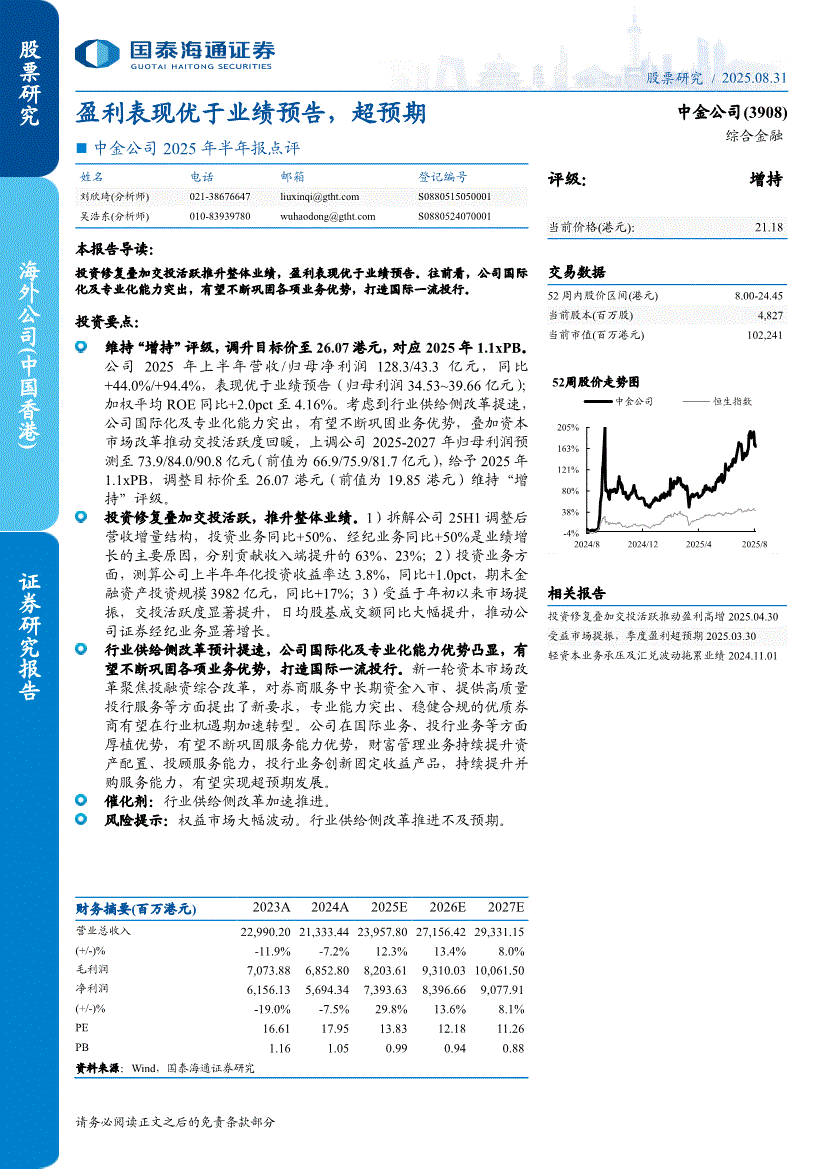中金公司:国泰海通证券-中金公司-3908.HK-2025年半年报点评:盈利表现优于业绩预告,超预期-250831
