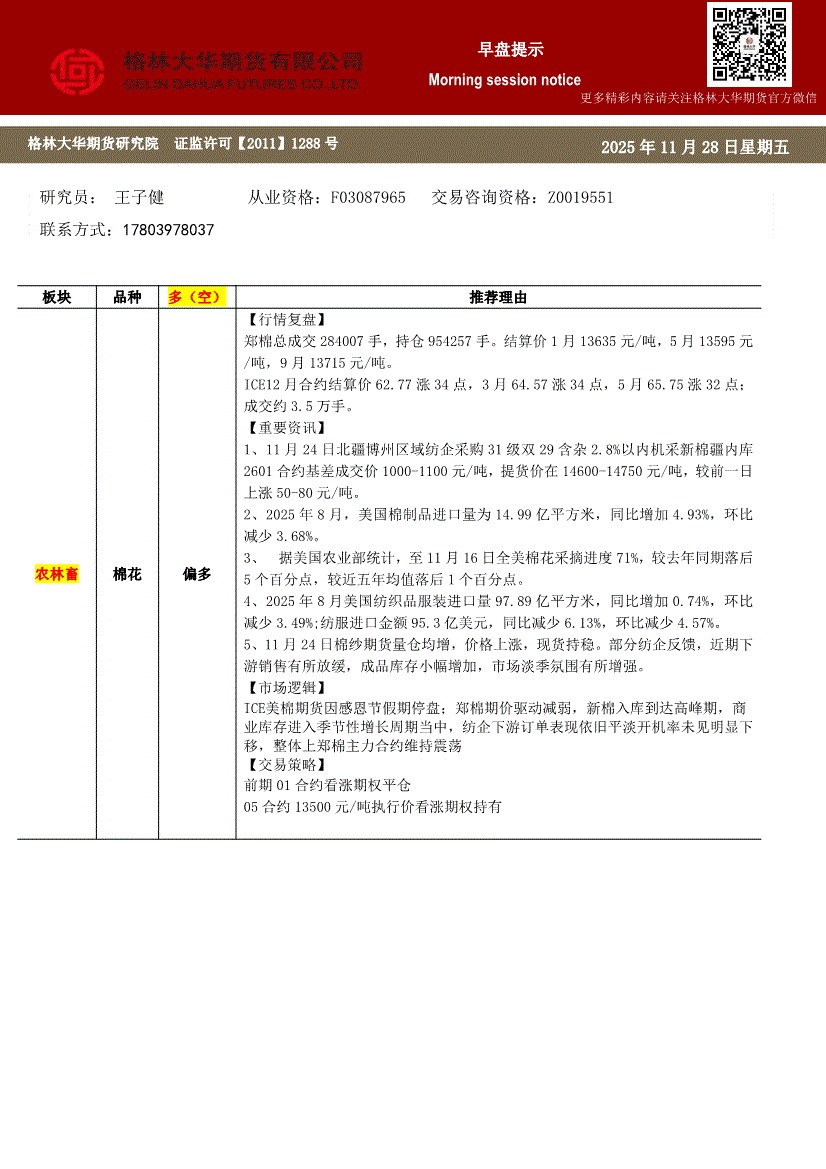 格林大华期货-期货早班车:棉花、苹果、原木-251029