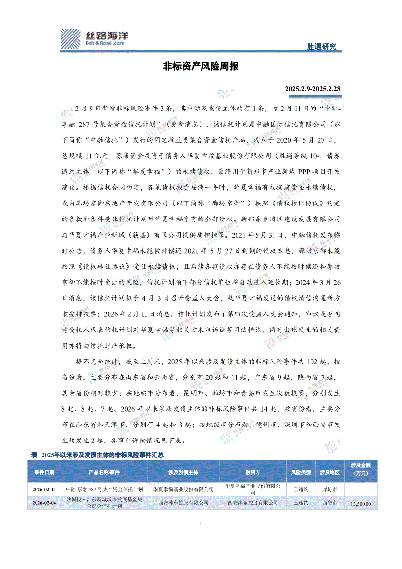 丝路海洋-非标资产风险周报-260228