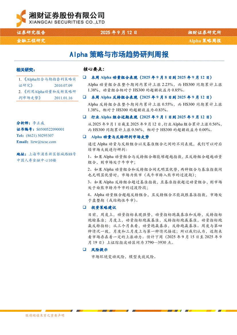 湘财证券-Alpha策略与市场趋势研判周报-250912