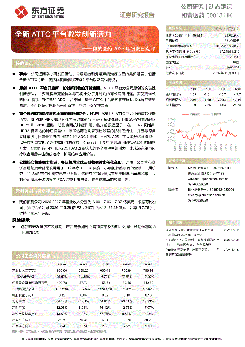 和黄医药:东方证券-和黄医药-0013.HK-2025年研发日点评:全新ATTC平台激发创新活力-251109