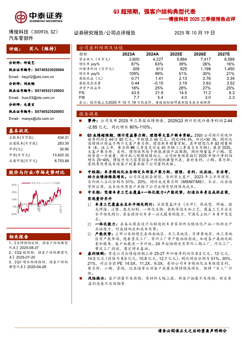 博俊科技:中泰证券-博俊科技-300926-2025三季报预告点评:Q3超预期,强客户结构典型代表-251019
