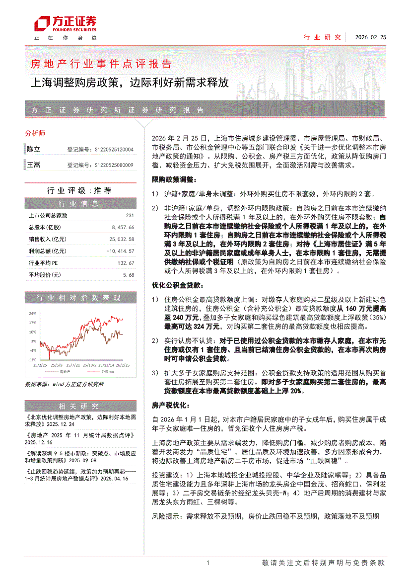 房地产行业:方正证券-房地产行业事件点评报告:上海调整购房政策,边际利好新需求释放-260225