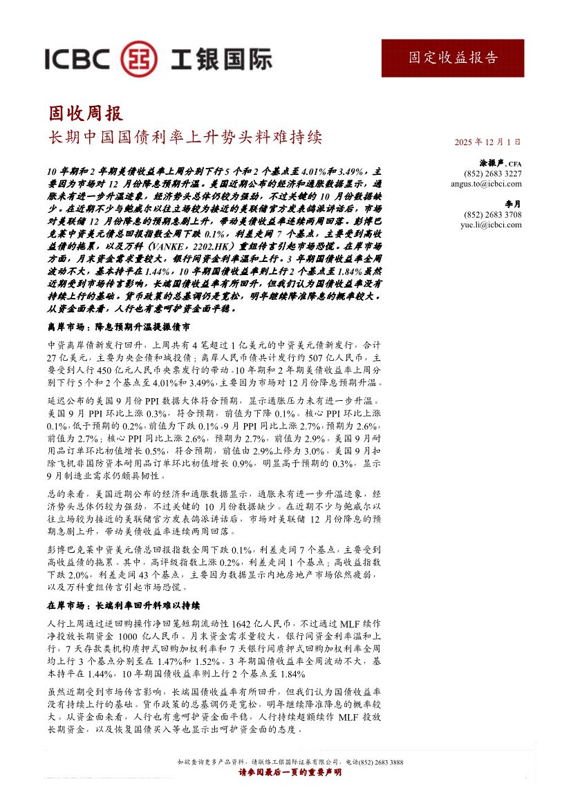 工银国际-固收周报:长期中国国债利率上升势头料难持续-251201