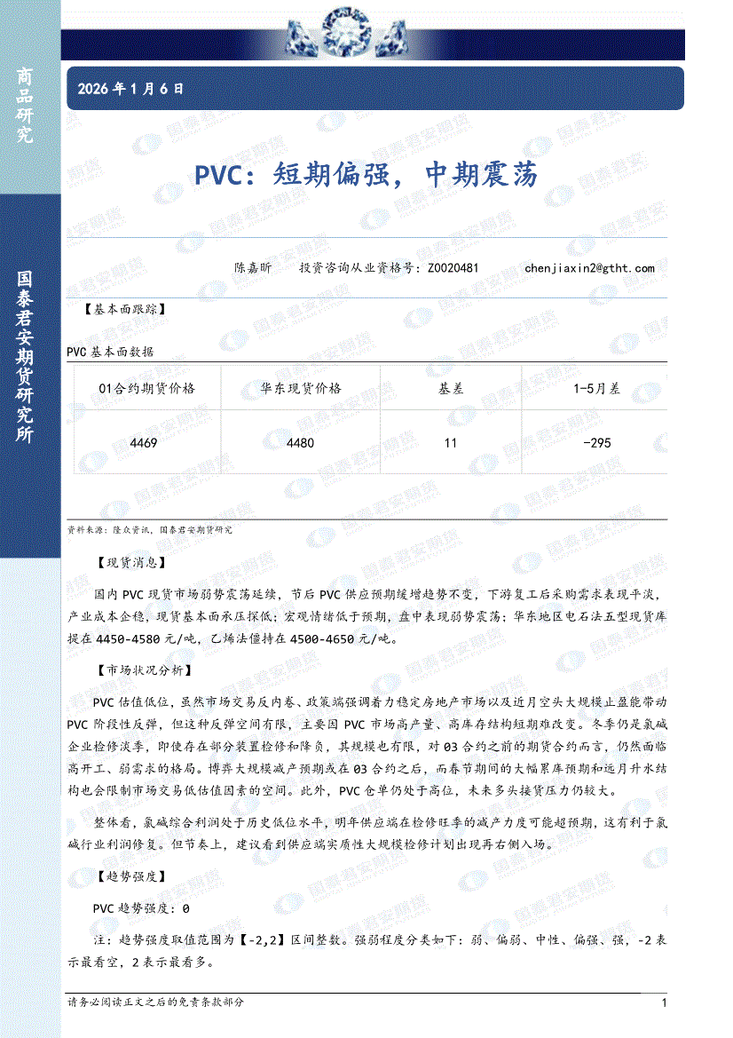 国泰君安期货-PVC:短期偏强,中期震荡-260106