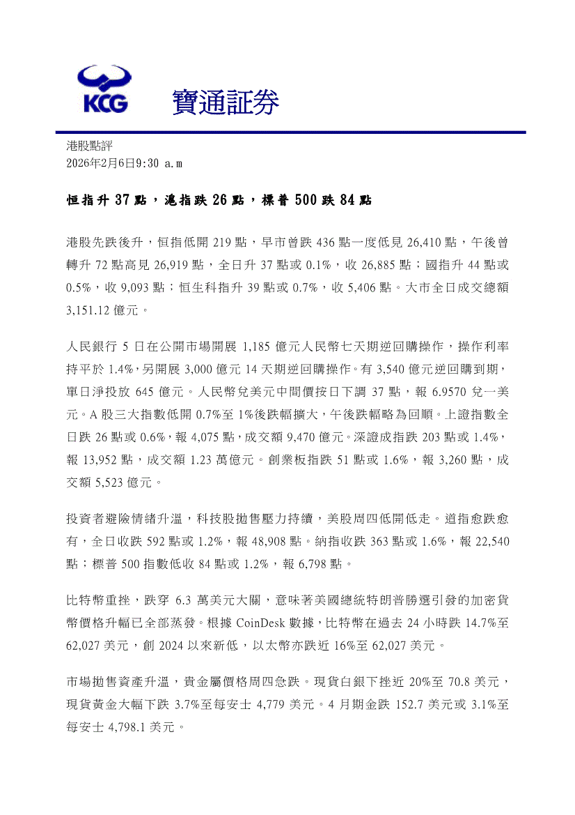 宝通证券-港股点评-260206