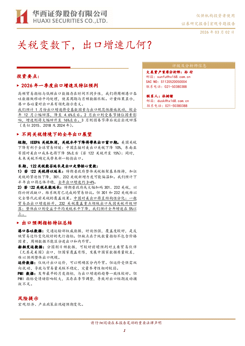 华西证券-关税变数下,出口增速几何?-260302