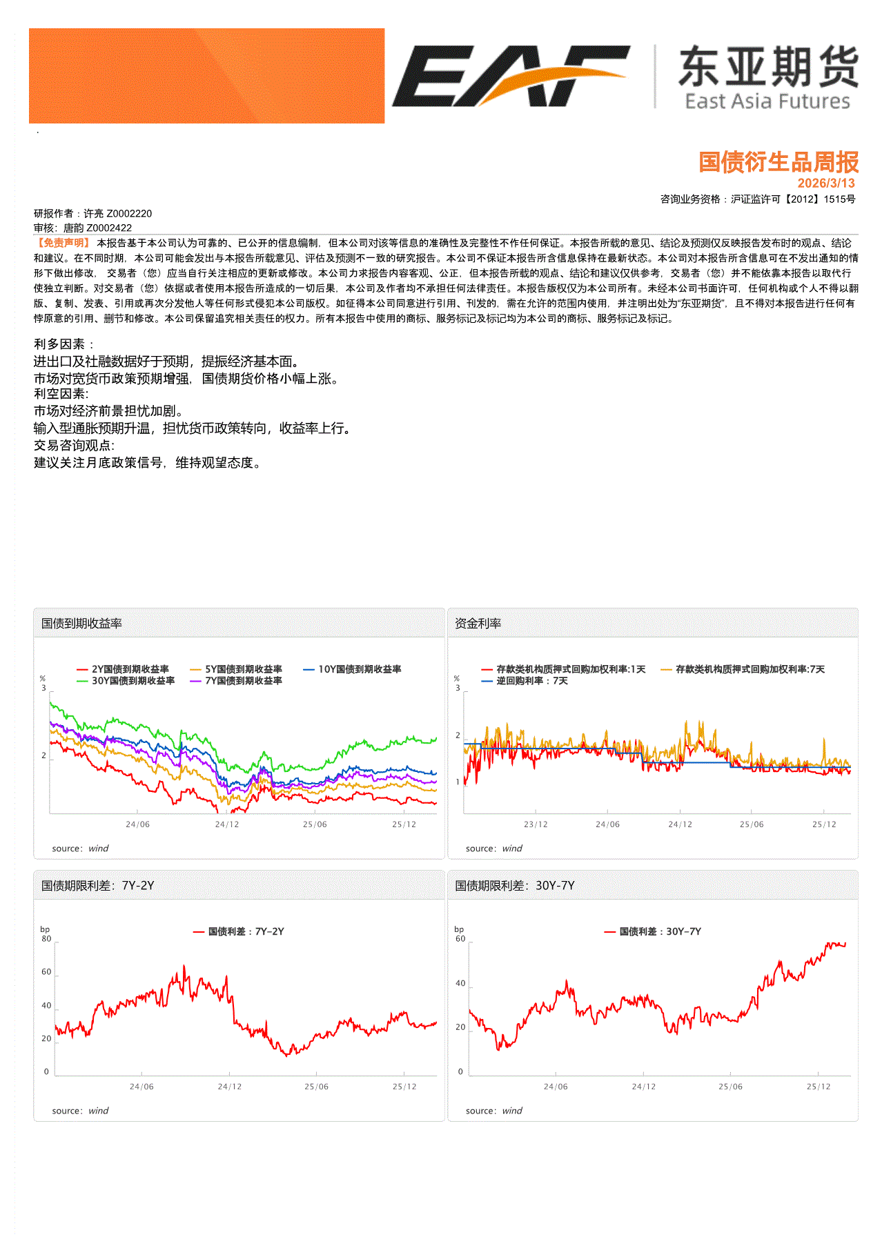 上海东亚期货-国债衍生品周报-260313