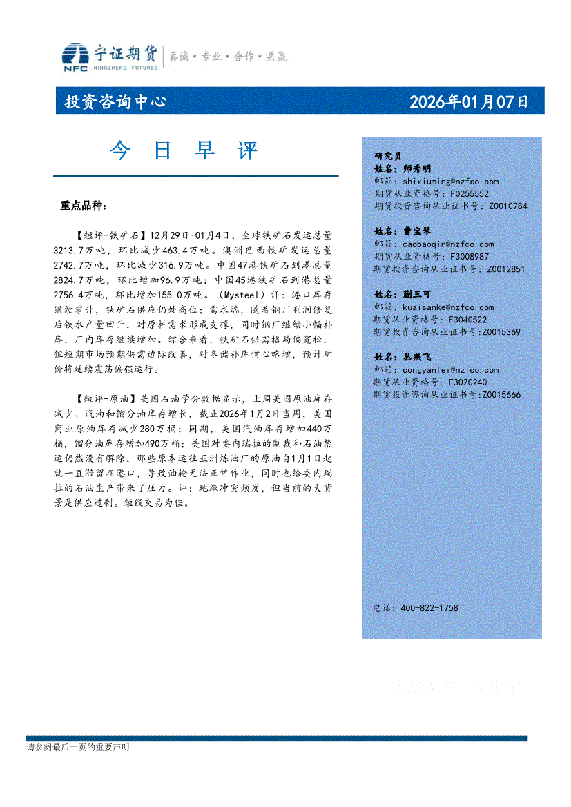 宁证期货-原油期货:供应充足、地缘持续发酵-260105
