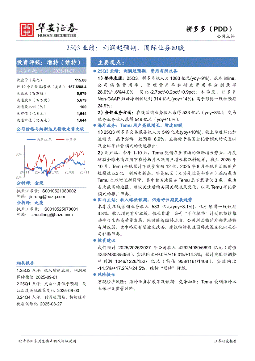 拼多多:华安证券-拼多多-PDD.US-25Q3业绩:利润超预期,国际业务回暖-251127