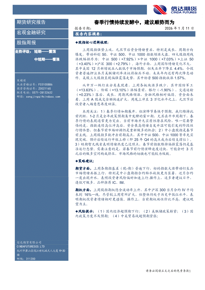 信达期货-股指周报:春季行情持续发酵中,建议顺势而为-260111