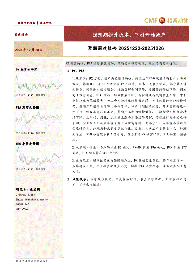 招商期货-聚酯周度报告:强预期推升成本,下游开始减产-251228