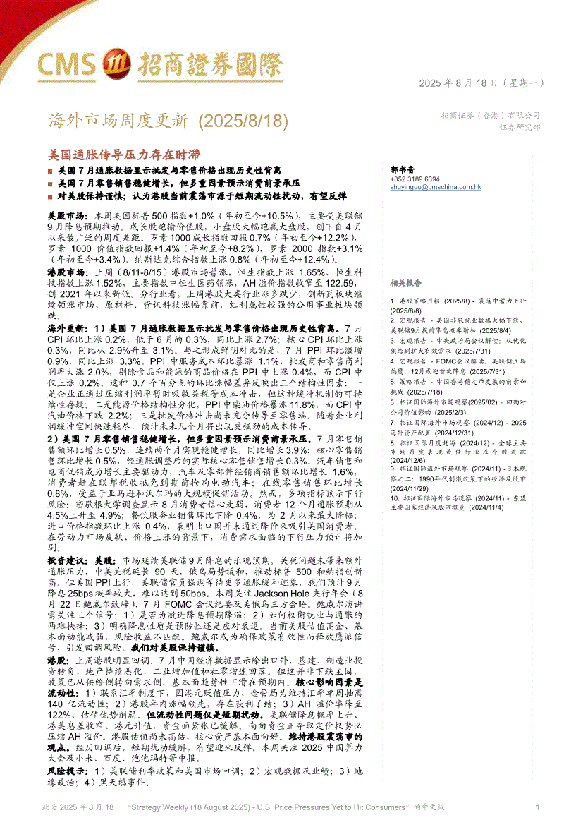 招商证券(香港)-海外市场周度更新:美国通胀传导压力存在时滞-250818