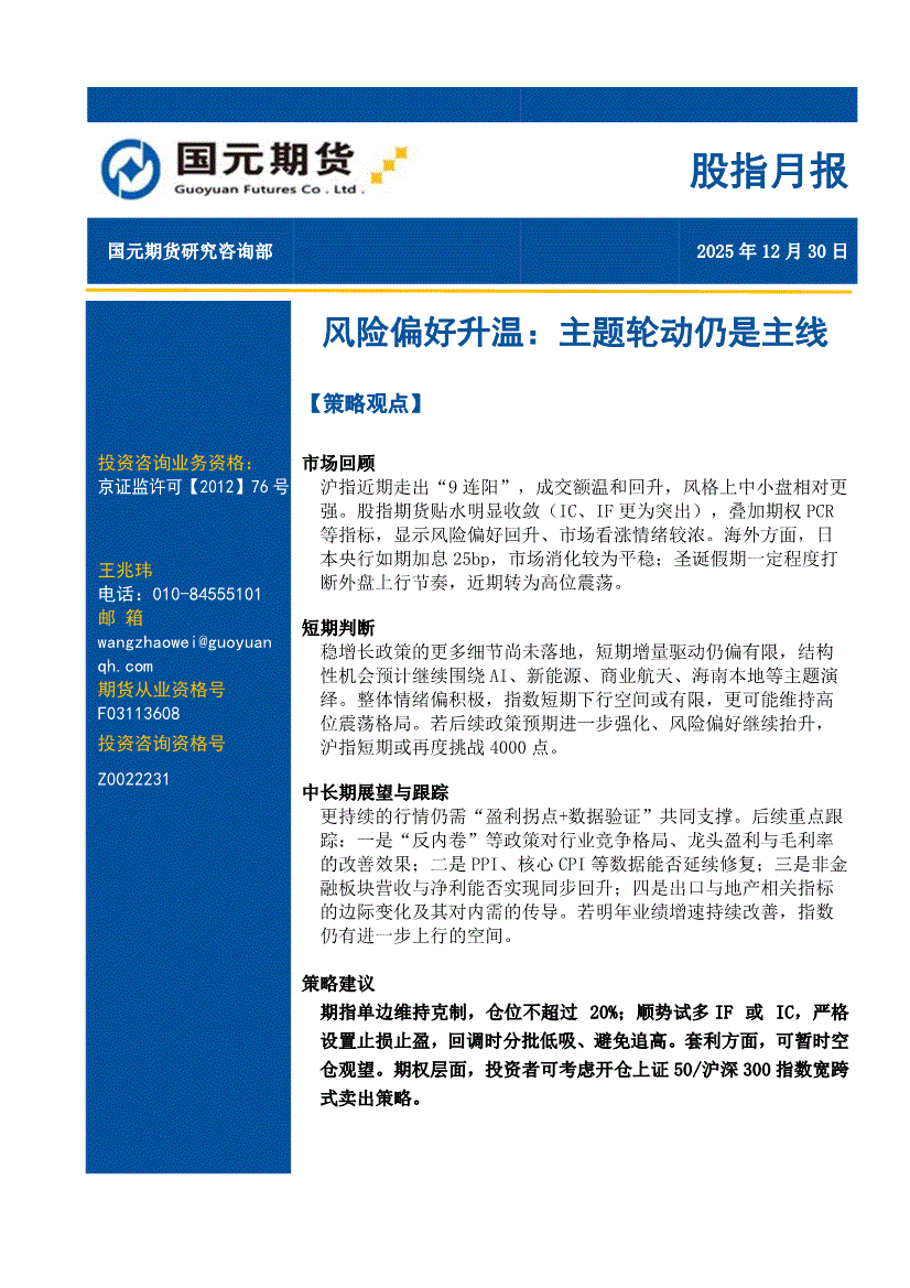 国元期货-股指月报:风险偏好升温~主题轮动仍是主线-251230