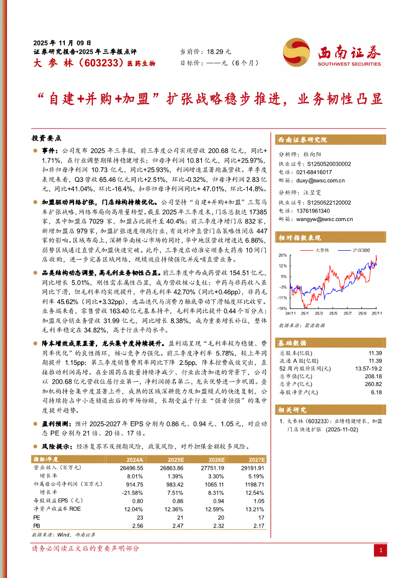 大参林:西南证券-大参林-603233-“自建+并购+加盟”扩张战略稳步推进,业务韧性凸显-251109