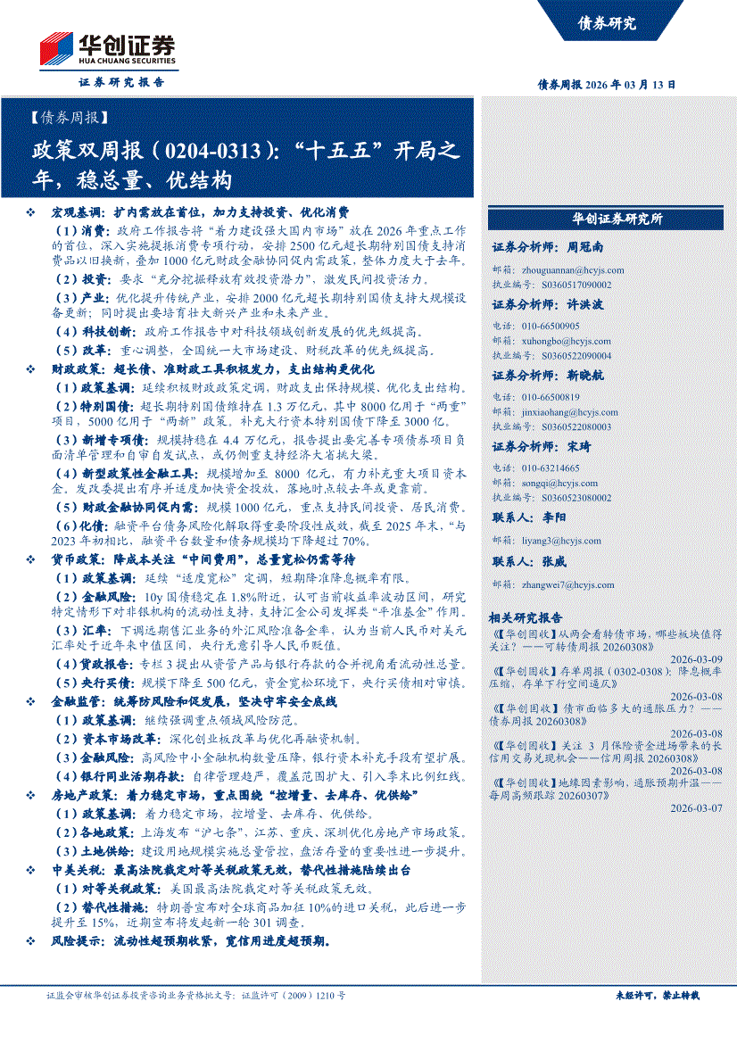 华创证券-【债券周报】政策双周报:“十五五”开局之年,稳总量、优结构-260313