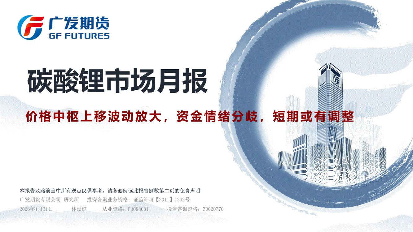 广发期货-碳酸锂市场月报:价格中枢上移波动放大,资金情绪分歧,短期或有调整-260131