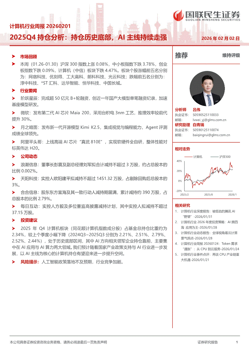 计算机行业:国联民生证券-计算机行业周报:2025Q4持仓分析,持仓历史底部,AI主线持续走强-260202