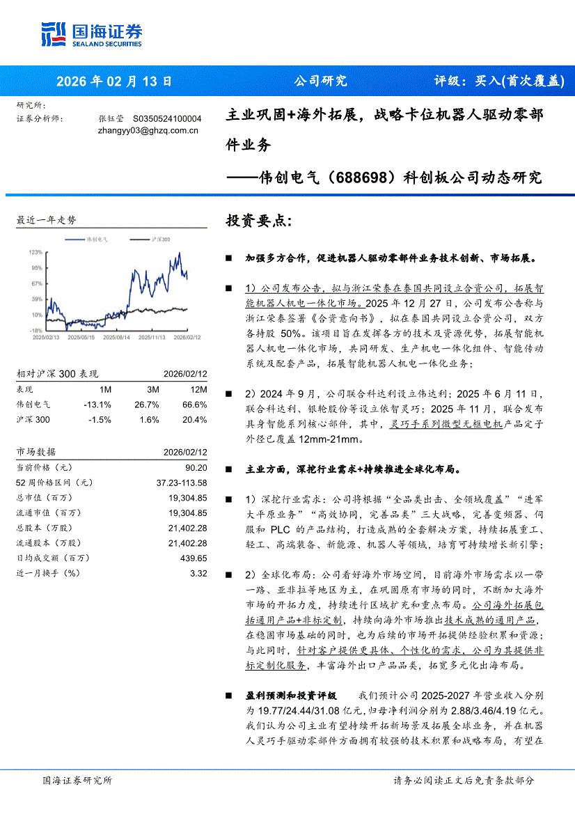 伟创电气:国海证券-伟创电气-688698-科创板公司动态研究:主业巩固+海外拓展,战略卡位机器人驱动零部件业务-260213