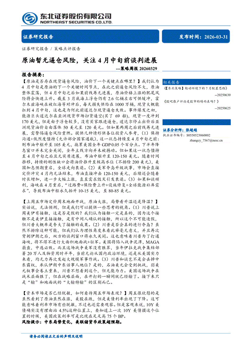东北证券-策略周报:原油暂无逼仓风险,关注4月中旬前谈判进展-260331