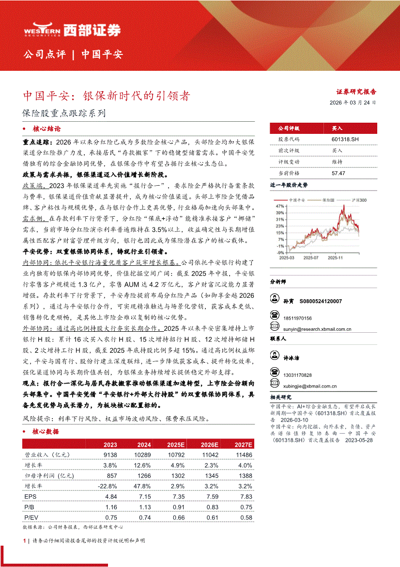中国平安:西部证券-中国平安-601318-保险股重点跟踪系列:银保新时代的引领者-260324