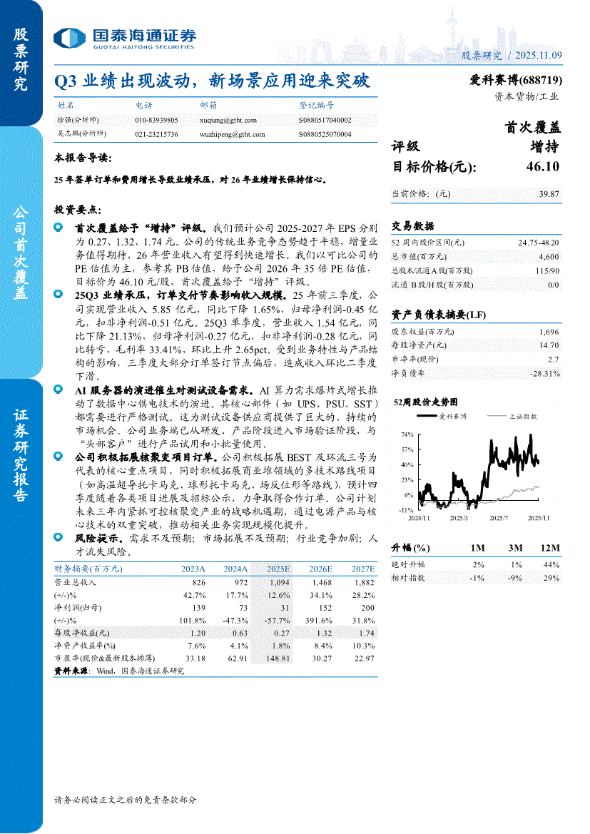 爱科赛博:国泰海通证券-爱科赛博-688719-Q3业绩出现波动,新场景应用迎来突破-251109
