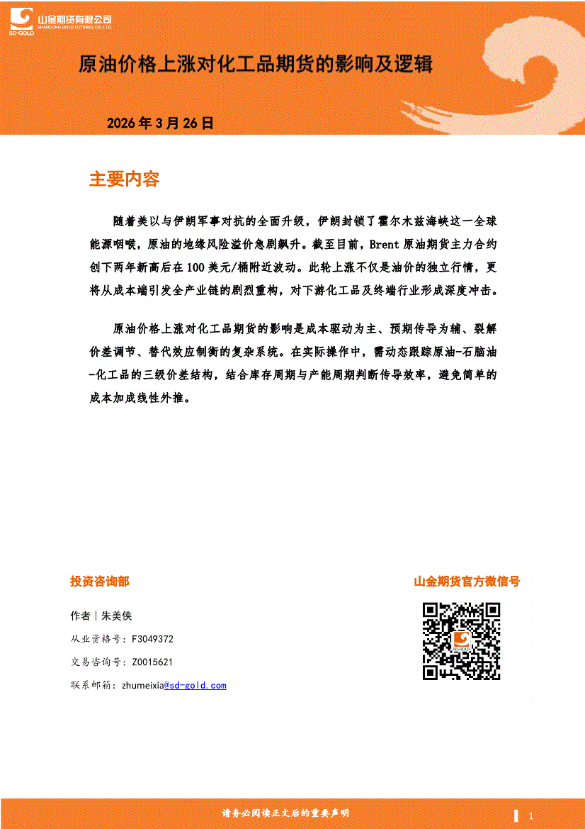 山金期货-原油价格上涨对化工品期货的影响及逻辑-260326