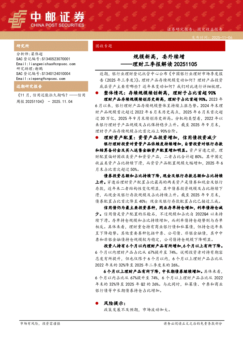 中邮证券-理财三季报解读:规模新高,委外续增-251106