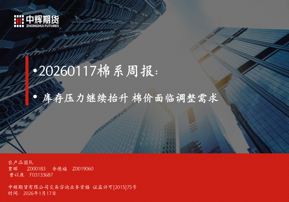 中辉期货-棉系周报:库存压力继续抬升,棉价面临调整需求-260117