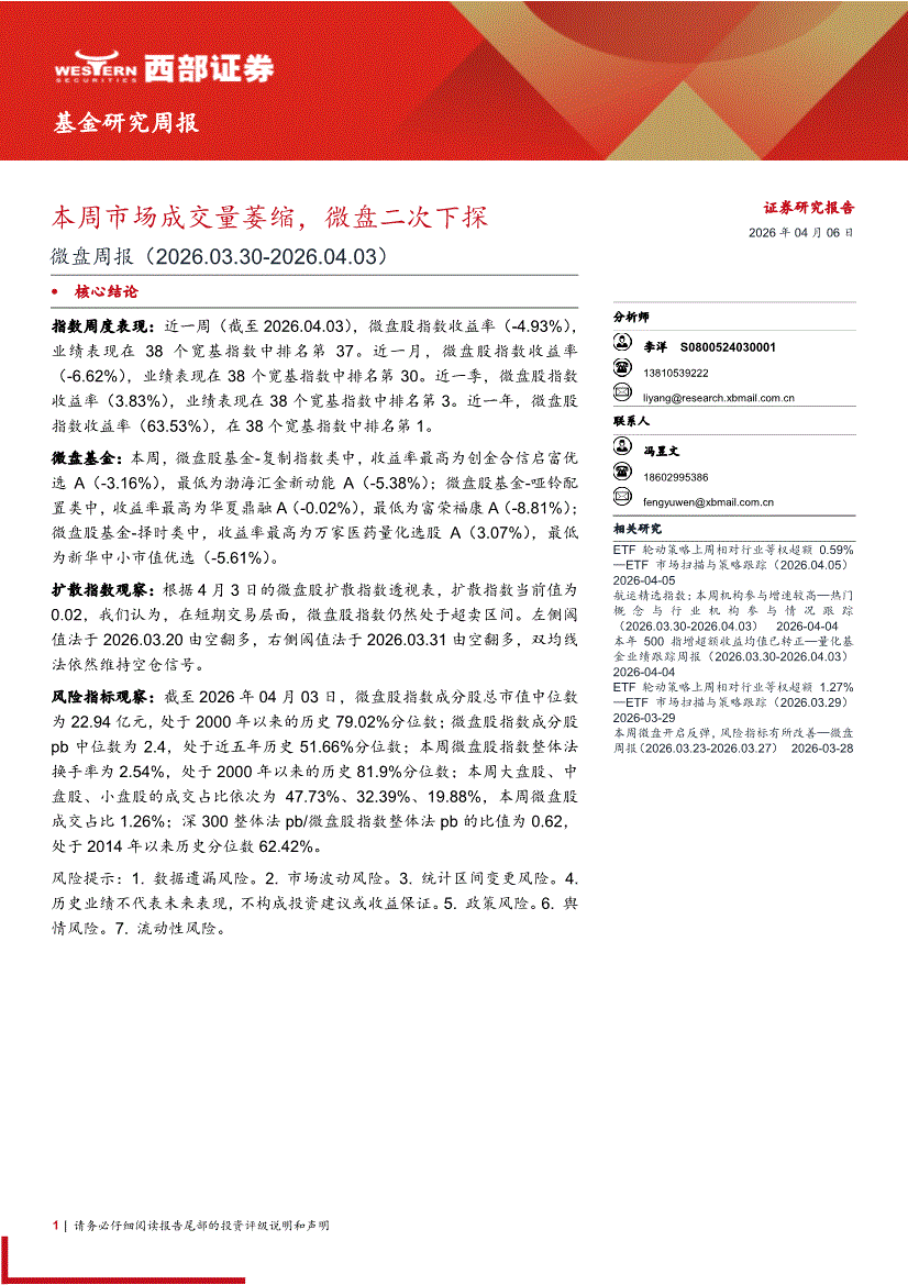 西部证券-微盘周报:本周市场成交量萎缩,微盘二次下探-260406