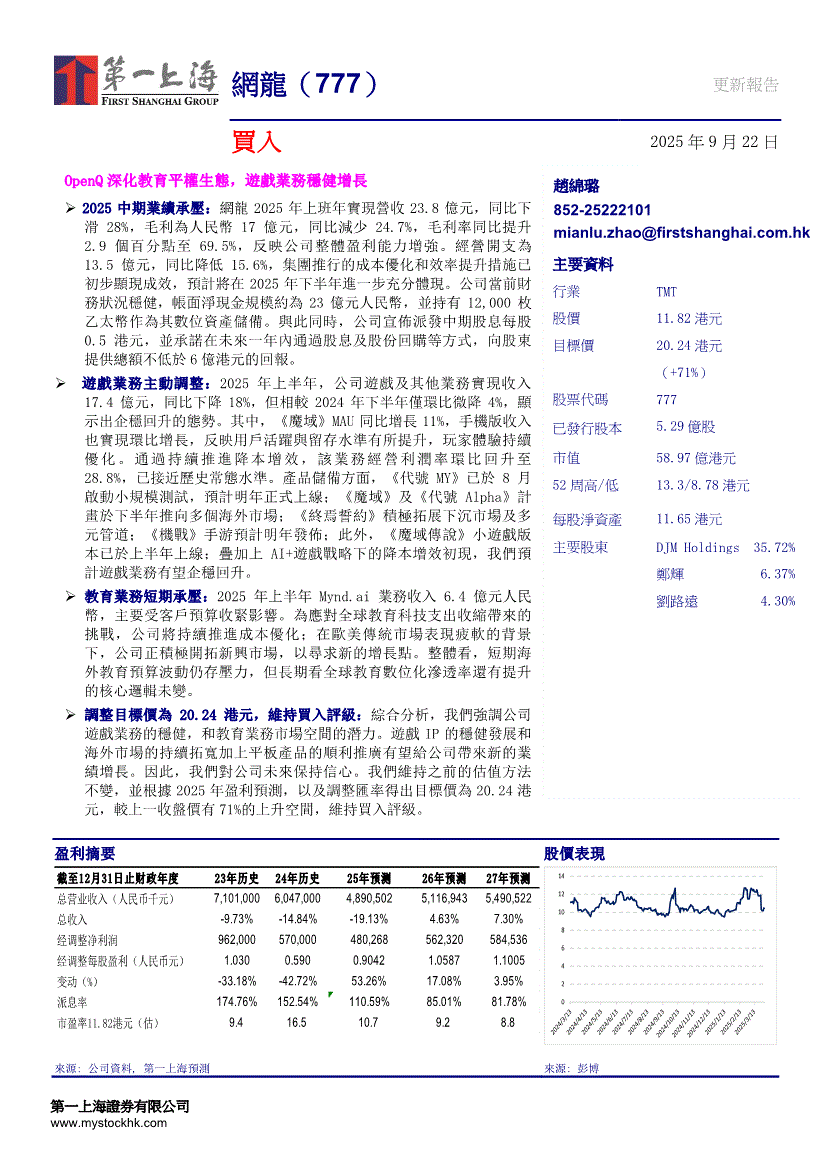 网龙:第一上海-网龙-0777.HK-OpenQ深化教育平权生态,游戏业务稳健增长-250922