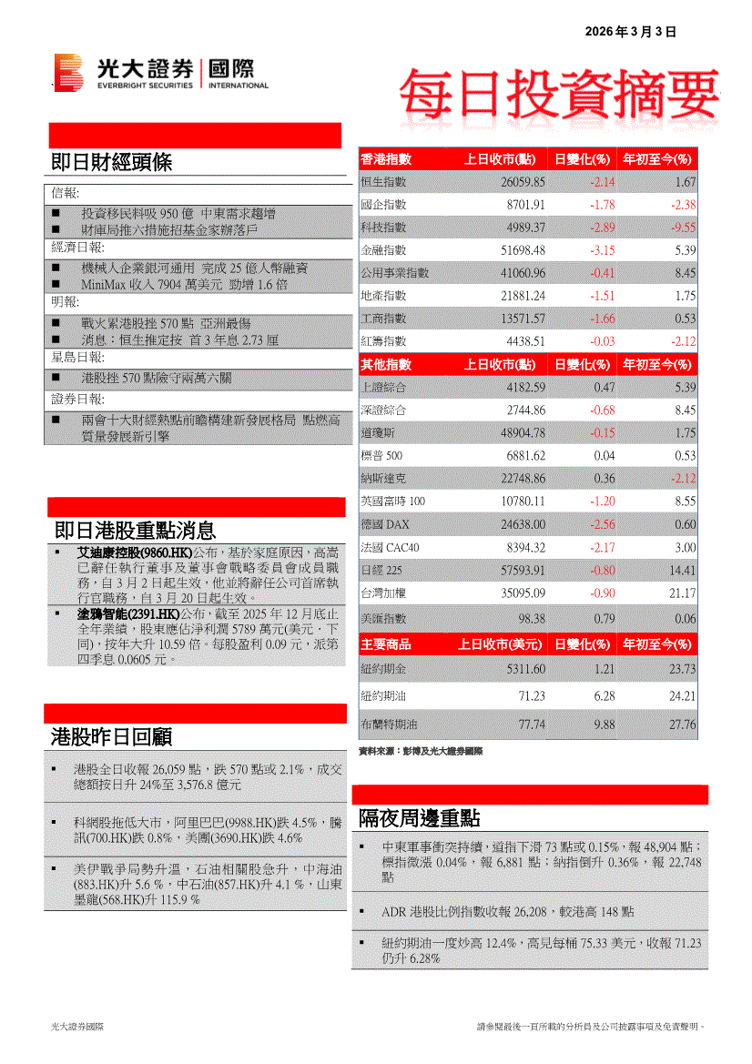 光大证券(国际)-每日投资摘要-260303