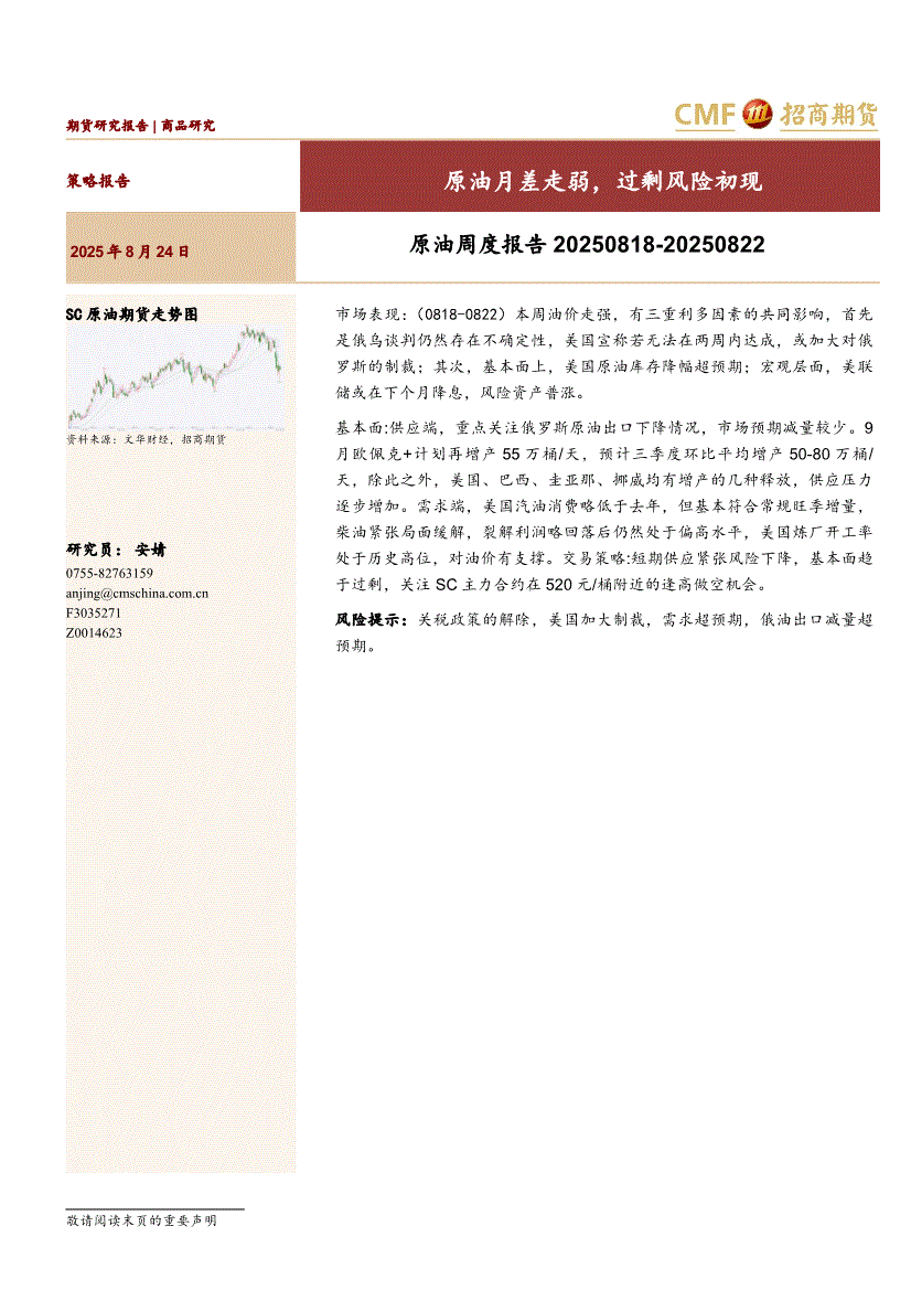招商期货-原油周度报告:原油月差走弱,过剩风险初现-250824
