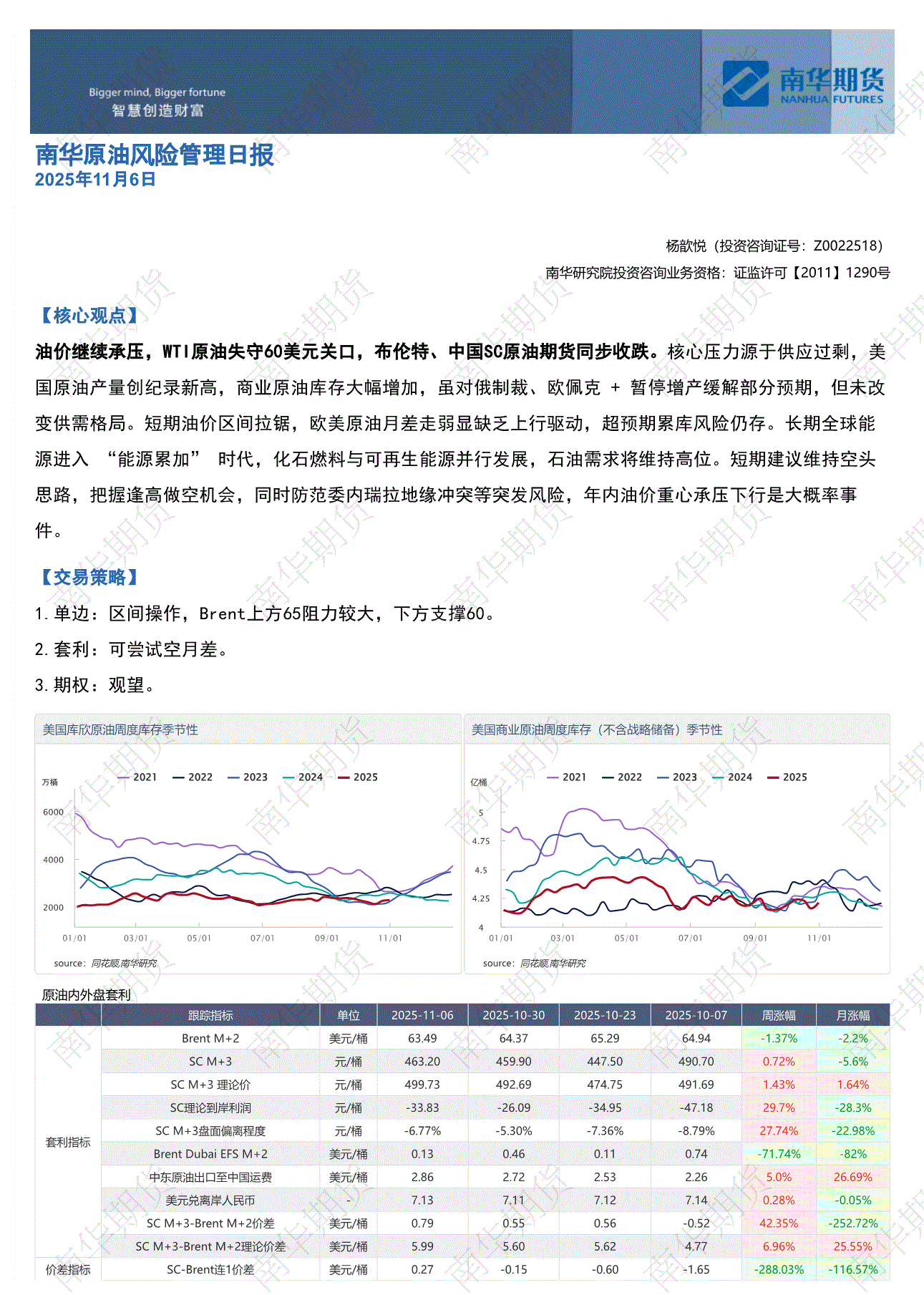 南华期货-原油产业周报:短期地缘利好,警惕回落风险-251027