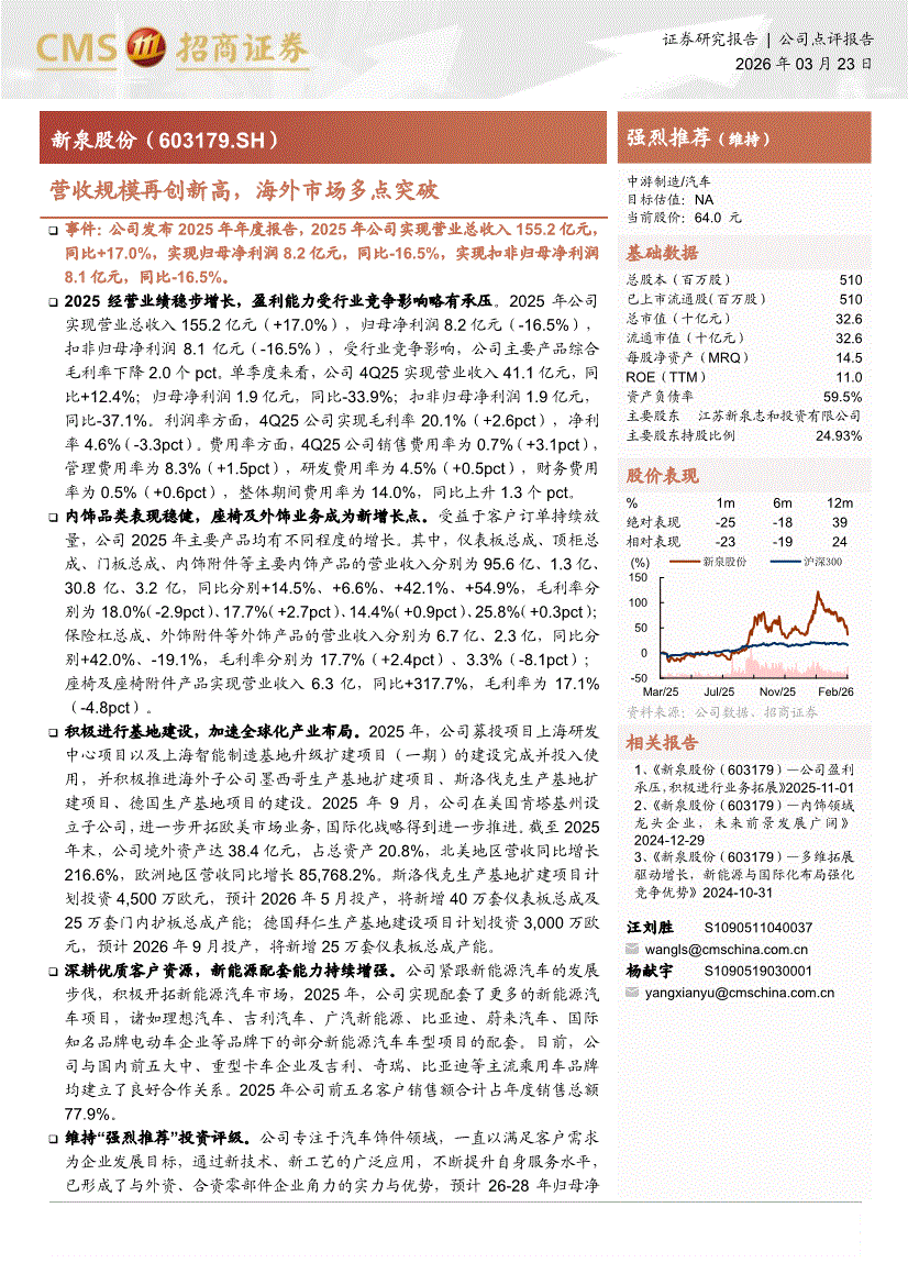 新泉股份:招商证券-新泉股份-603179-营收规模再创新高,海外市场多点突破-260323