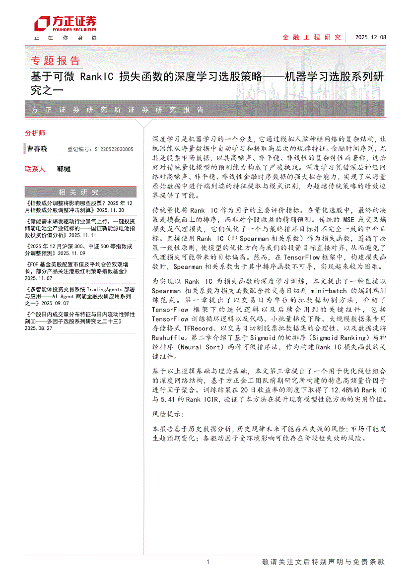 方正证券-专题报告:基于可微RankIC损失函数的深度学习选股策略——机器学习选股系列研究之一-251208