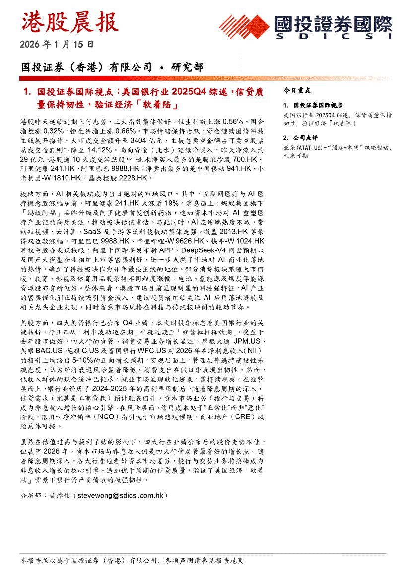 国投证券国际-港股晨报-260115