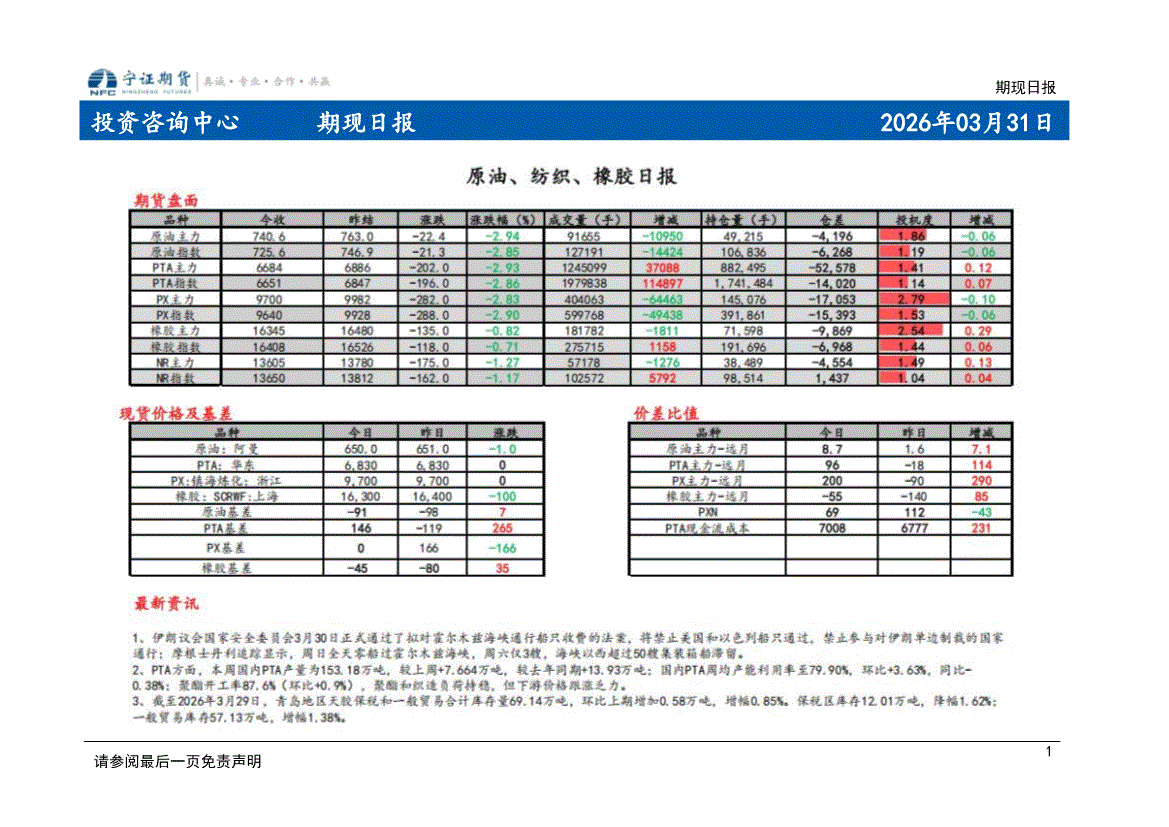 宁证期货-期现日报-260331