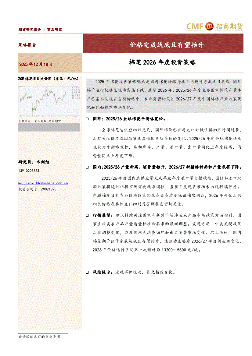 招商期货-棉花2026年度投资策略:价格完成筑底且有望抬升-251218